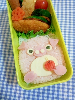 わくわくキャラクター弁当 グッドラック ブタのピンク弁当 キャラ弁