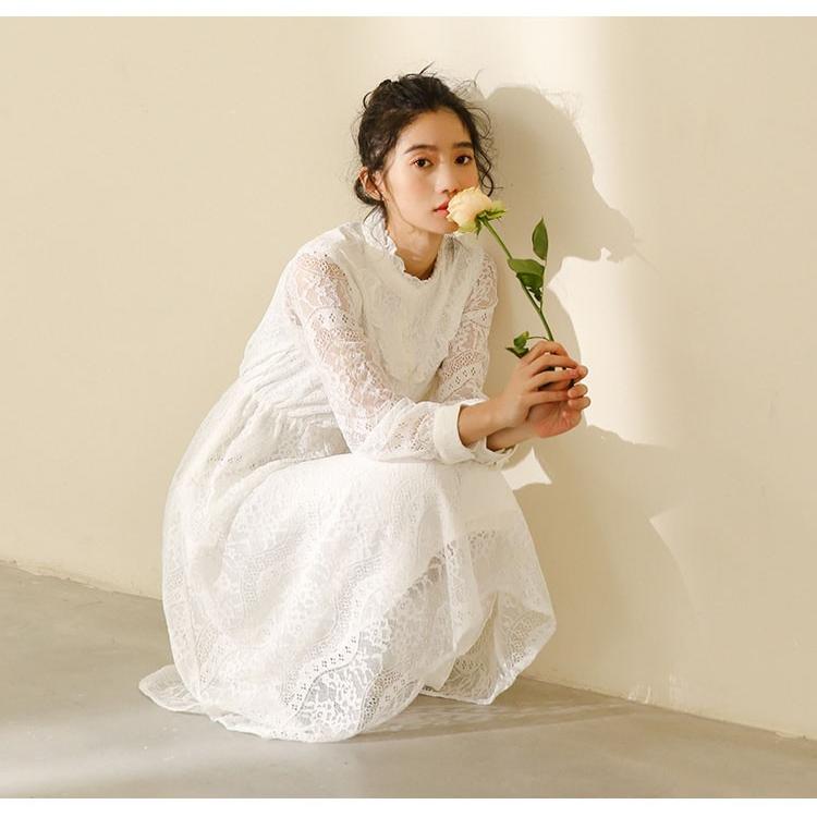 人気のモノトーンコーデが完成します ワンピース ワンピ レディース 女性用 夏ワンピ 夏ワンピース ドレス 長袖 シースルー ひざ丈下 ハイウエスト レース 無地 パーティー 食事会 女子会 お呼ばれ お出かけ デート 行事 シンプル 人気 おすすめ 夏 定番 トレンド